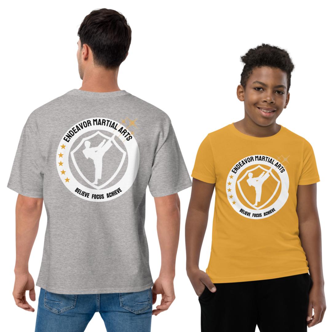 Kids come in orange with design on the front. Adults come in grey with design on the back.
